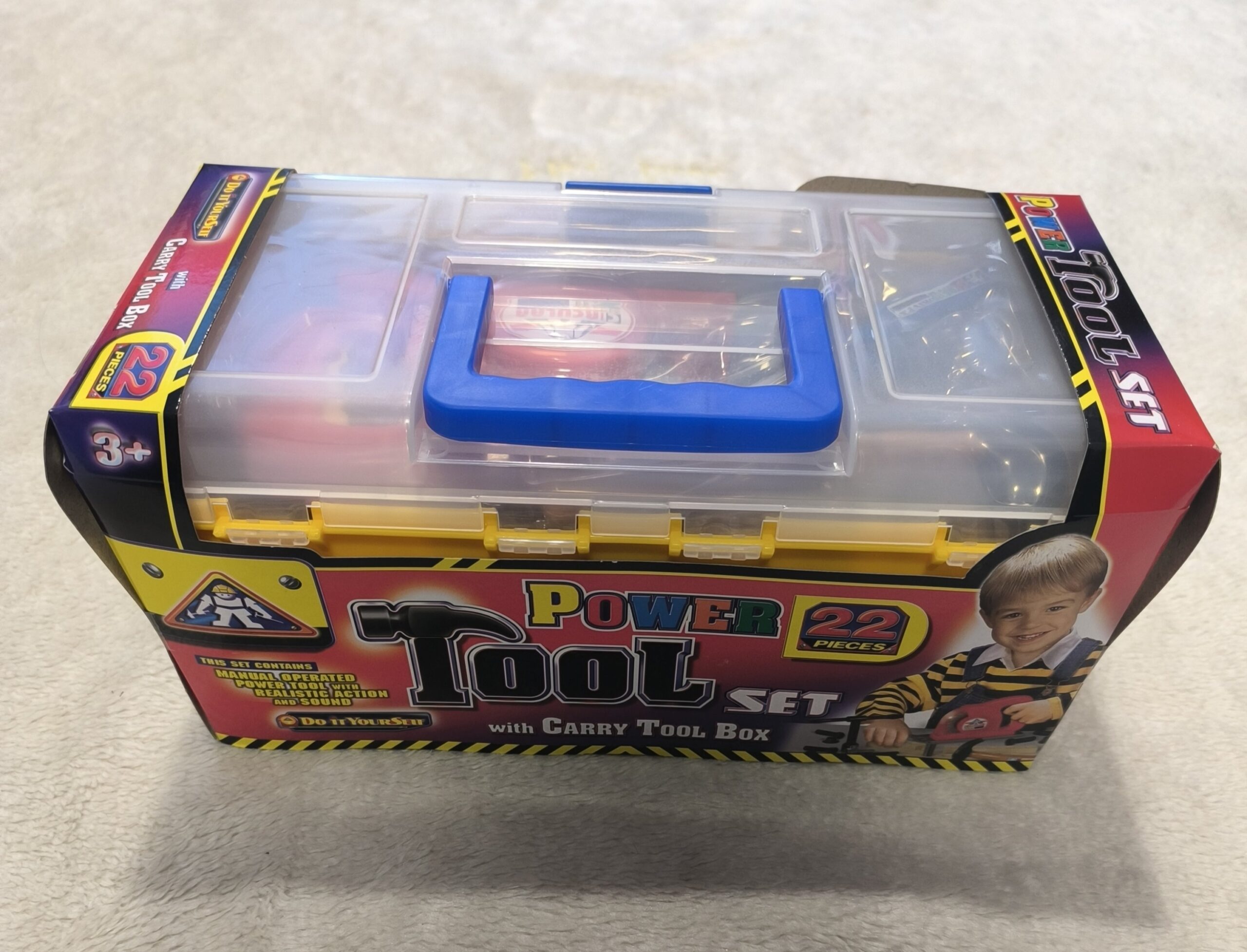 Esta es una caja de herramientas de juguete Garry Tool Box de 22 piezas.