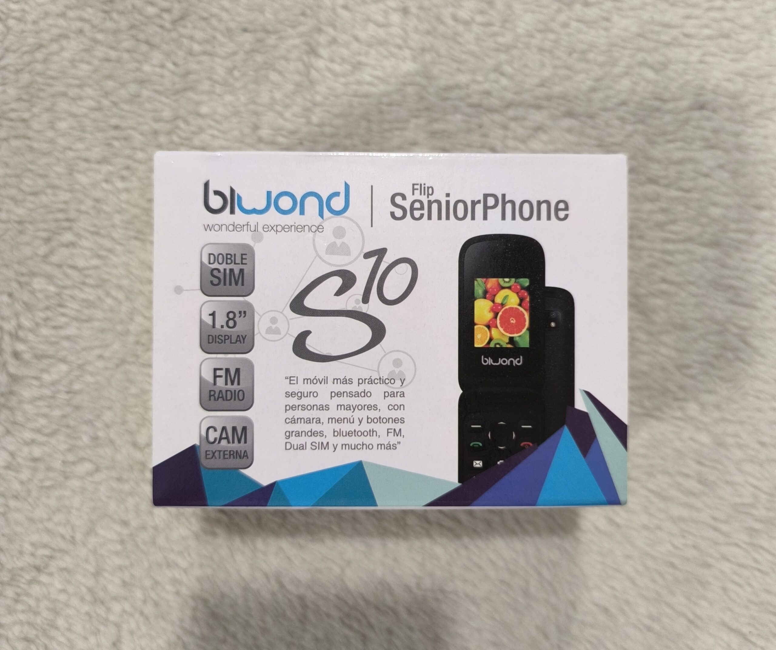 Teléfono móvil Biwond SeniorPhone S10 Flip, un dispositivo diseñado específicamente para personas mayores.